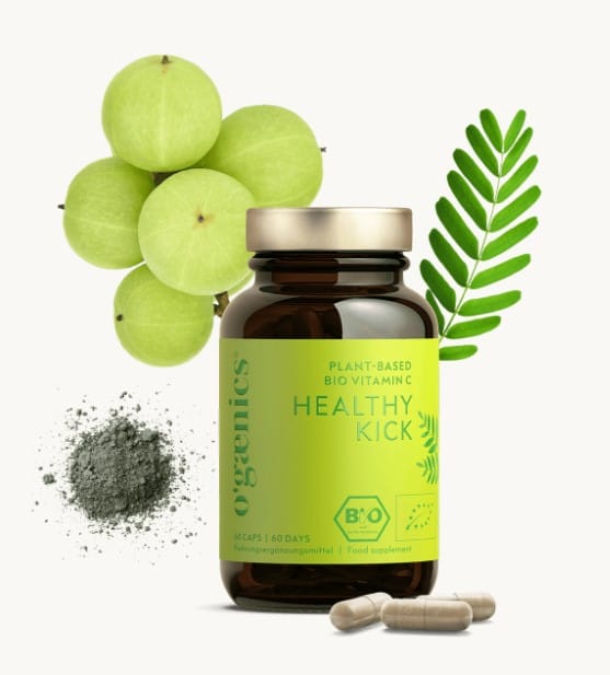 HEALTHY KICK rastlinski ekološki vitamin C je naravno prehransko dopolnilo z visokimi odmerki rastlinskega vitamina C iz organskih plodov amle. Je nepogrešljiv zagon za telo za energijsko podporo v času stresa ali ob redni vadbi. Izdelek koristi tudi kadilcem, saj je potreba po vitaminu C pri njih za 40 % večja kot pri nekadilcih.